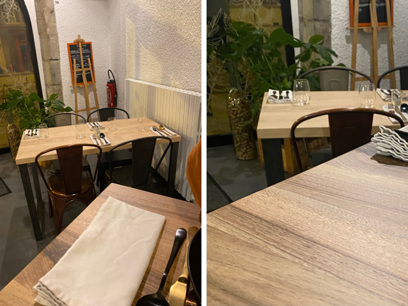 AGENCEMENT PRO Tables de restaurant – L’Unalôme Plateau en chêne, noyer ou frêne vernis mat. Pieds trapèze en acier vernis de Thomas Naulin. Conception Bride & Bois LIEU : Besançon 2021